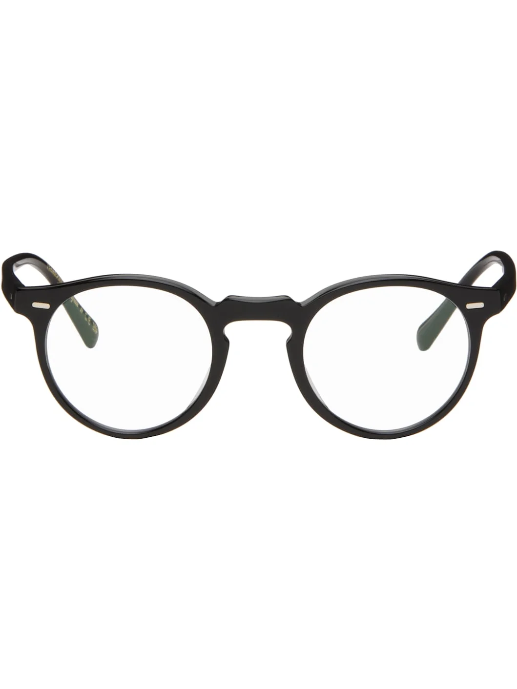 Handcrafted round acetate-frame optical glasses. · Keyhole bridge · Integrated nose pads · Inset logo hardware at temple tip · Includes case · Size: 47.23 150 Part of the Gregory Peck collection. Supplier color: Black Acetate. Made in Japan 261499M133004