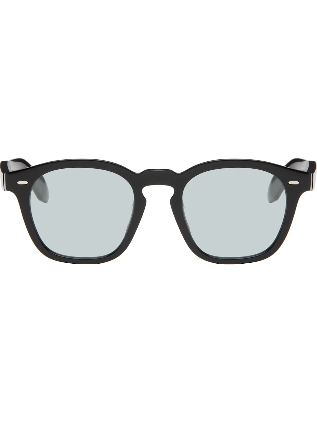 Handcrafted square acetate-frame sunglasses. · Blue lenses · Keyhole bridge · Integrated nose pads · Includes pouch · Size: 49.21 145 Supplier color: Black Acetate. Made in Japan 261499M134036