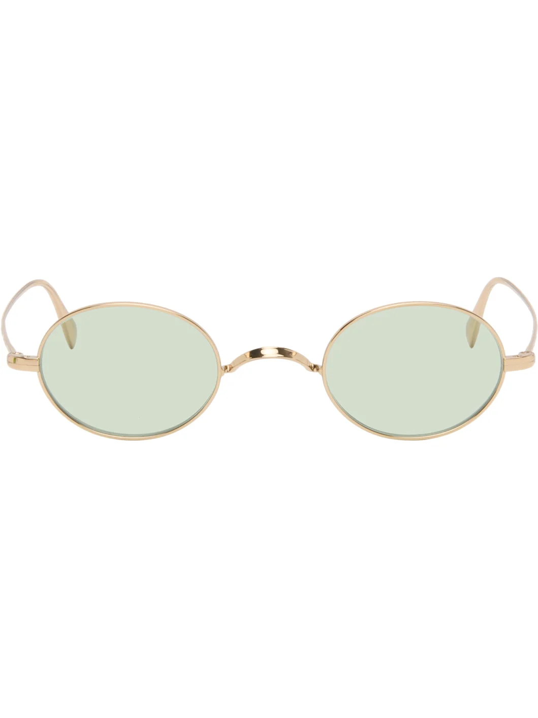 Handcrafted oval metal-frame sunglasses. · Green lenses · Saddle bridge · Logo embossed at temples and temple tip · Includes case · Size: 43.24 145 Supplier color: Gold metal/Green wash Metal. Made in Italy 261499M134012