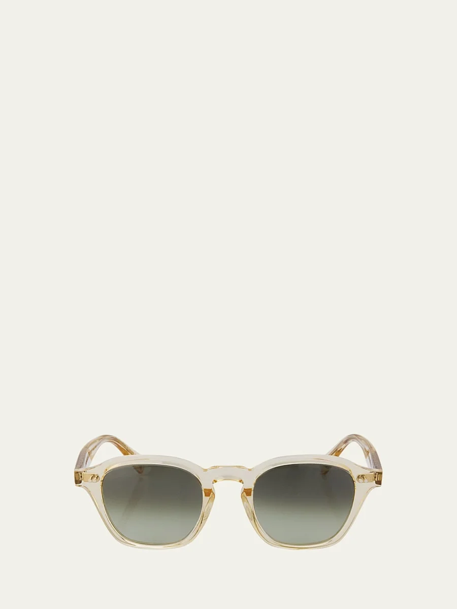 Oliver Peoples "0OV5580SU" square sunglasses in transparent acetate to showcase the filigree corewire Eye/bridge/temple (in mm): 48/22/145 Gradient lenses Keyhole nose bridge Tapered arms Curved temple tips Acetate 100% UVA/UVB protection Made in Italy Proposition 65 warning for California residents Online Inquiries: BGS21_ND2F6| Store Inquiries: #5001929