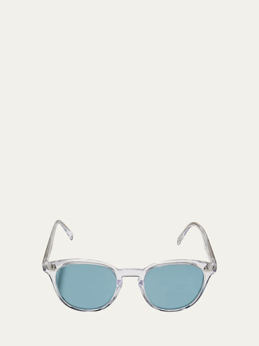Oliver Peoples "Desmon Sun" vintage-inspired round sunglasses with beveled-cut acetate frames Solid-colored lenses Full-rim frames; keyhole nose bridge Studded accents at sides and temples Custom filigree at metal corewire arms Tapered arms; inlaid logo at curved temple tips 100% UVA/UVB protection Made in Italy Online Inquiries: BGS21_N9876| Store Inquiries: #4306497