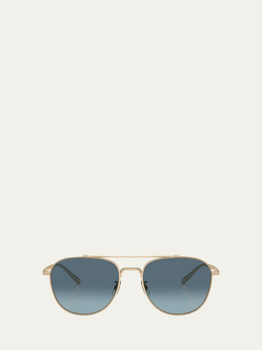 Oliver Peoples aviator sunglasses in gold-tone metal Gradient lenses Double-nose bridge Adjustable nose pads Thin arms; curved temple tips Metal 100% UVA/UVB protection Made in Italy Proposition 65 warning for California residents Online Inquiries: BGS21_NC2CZ| Store Inquiries: #4791300
