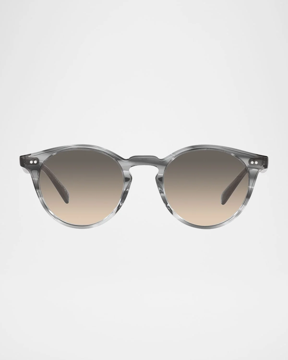 - Oliver Peoples "The Romare Sun" round sunglasses feature dual pins at front frames and temples - Eye/bridge/temple (in mm): 50-22-145 - Gradient lenses - Full-rim frames - Keyhole nose bridge - Tapered arms; inlaid logo at curved temple tips - Acetate - 100% UVA/UVB protection - Made in Italy - Proposition 65 warning for California residents