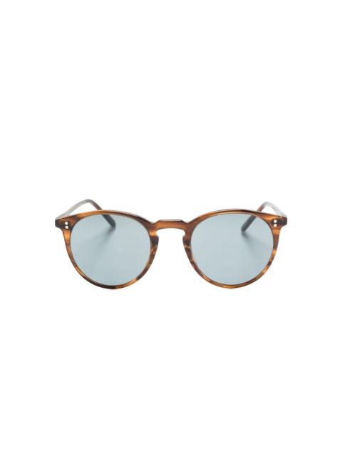 O'Mailley sunglasses Brown O'Mailley sunglasses from Oliver Peoples featuring round frames, a tortoise shell finishing, straight arms with angled tips and tinted lenses. Made in Italy Composition Acetate 100% SIZE & FIT Measurement Bridge Width 0.86 in(2.2 cm) Lens Diameter 1.88 in(4.8 cm) Total Width 5.11 in(13 cm) Arm Length 5.7 in(14.5 cm)