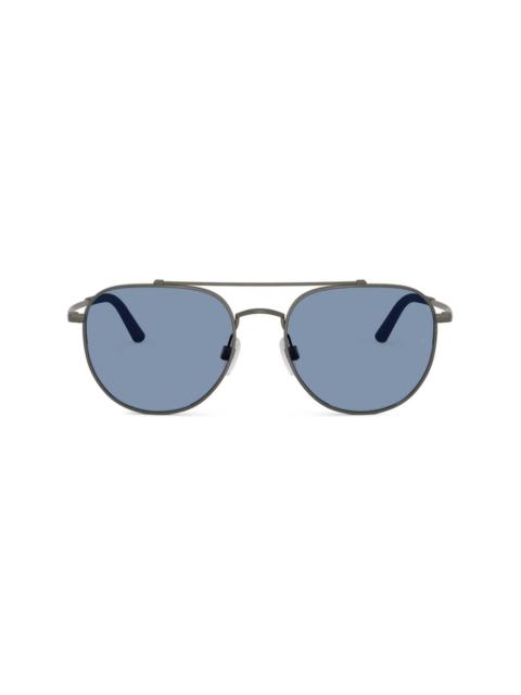 R-10 sunglasses Highlights - Silver-tone - Metal - Pilot frame - Double bridge - Nose pads - Blue tinted lenses - Curved tips - These glasses come with a protective case. Imported Composition Metal 100% SIZE & FIT Measurement Arm Length 5.7 in(14.5 cm) Bridge Width 0.7 in(1.8 cm) Lens Diameter 2.12 in(5.4 cm)