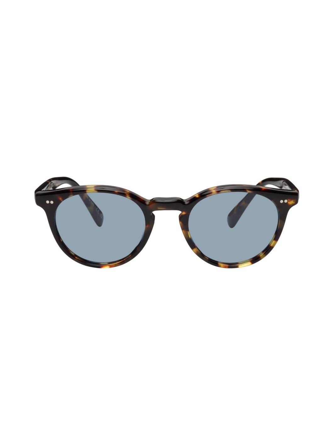 Handcrafted round acetate-style sunglasses in tortoiseshell. · Blue lenses · Integrated nose pads · Silver-tone hardware at temples · Pouch included · 50.22 145 Supplier color: Vintage DTB Acetate.