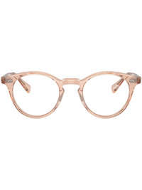 round-frame glasses light pink acetate clear lenses round frame straight arms curved tips These glasses come with a protective case. All glasses from FARFETCH are sold as non-prescription frames. Made in United States Composition Acetate 100%