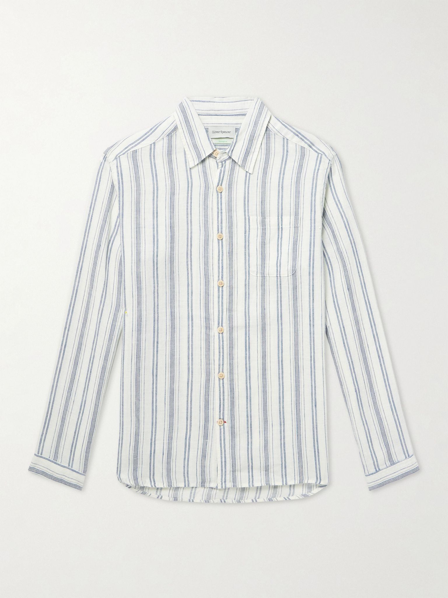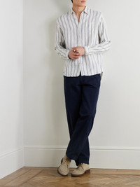 New York Special Striped Cotton and Linen-Blend Shirt Blue