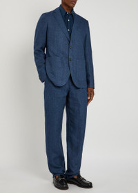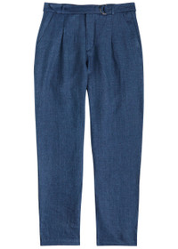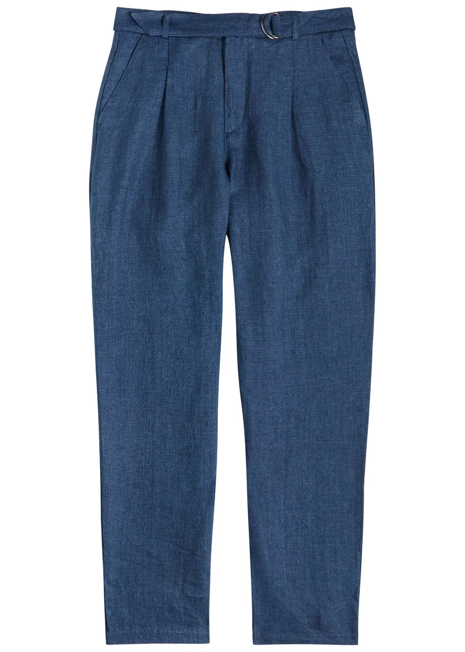 Info & Care Oliver Spencer linen trousers Belt loops, detachable D-ring fastening belt, pleats at front waist, side slip pockets, back patch pockets; Partially concealed button and zip fastening at front 100% linen; lining: 50% polyester, 50% cotton Dry clean Size & Fit Inside leg length: 32 inches/ 81cm Midweight Straight-leg cut Model is 6'1"/ 185cm and wears a size;W32