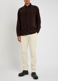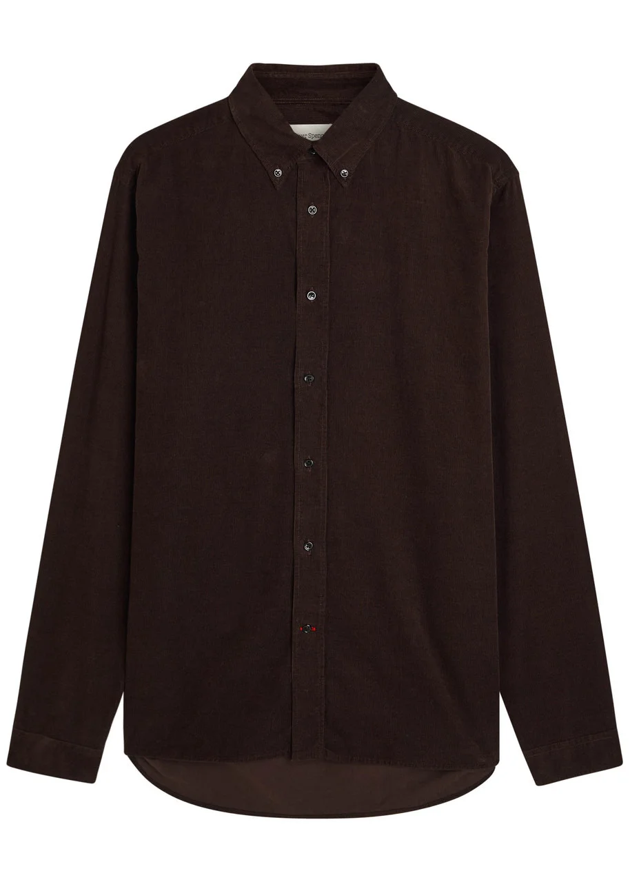 Info & Care Oliver Spencer corduroy shirt Button-down collar, button-fastening cuffs, contrasting stitching detail at front, curved hem, longer back hem Button fastenings through front 100%;cotton; Machine wash Size & Fit Length shoulder to hem: 28 inches/ 71cm; back: 31 inches/ 79cm Midweight Boxy fit, straight cut Model is 6'1"/ 185cm, chest size 36 inches and wears a size;39