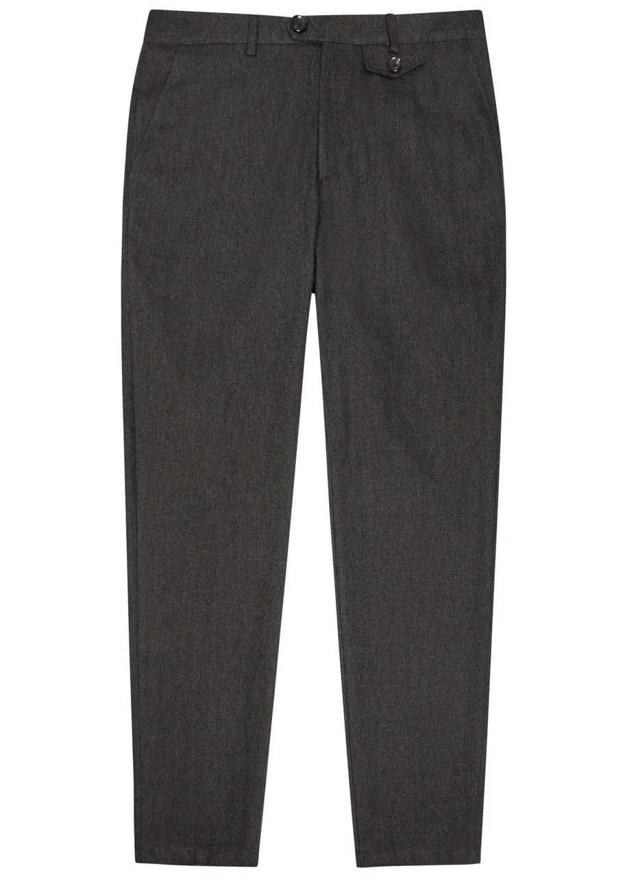 Info & Care Oliver Spencer cotton-blend trousers Herringbone, belt loops, tab at waistband, side slip pockets, button-fastening pockets at back Partially concealed button and zip fastening at front 75% cotton, 25% wool Dry clean Size & Fit Inside leg length: 33 inches/ 84cm Midweight Tailored style Tapered-leg cut Model is 6'1"/ 185cm and wears a size;W32