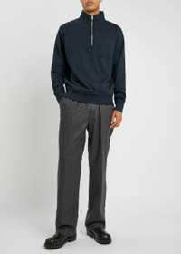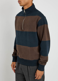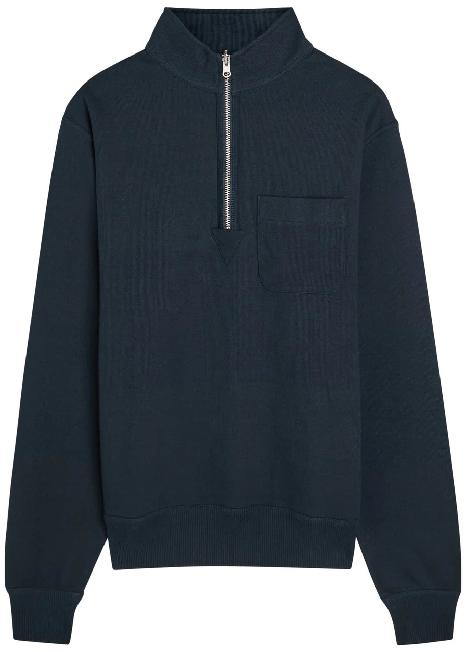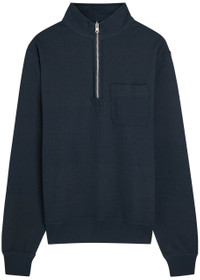 Info & Care Oliver Spencer cotton sweatshirt Reversible, zip-fastening high neck, chest patch pocket, striped at reverse, ribbed trims Slips on; 100% cotton Machine wash Size & Fit Length shoulder to hem: 26.5 inches/ 67.5cm Midweight Boxy, relaxed fit Model is 6'1"/ 185cm, chest size 36 inches and wears a size medium