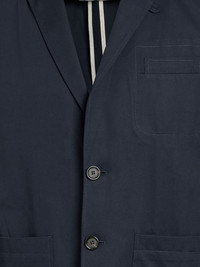 single-breasted blazer Highlights - Navy blue - Notched lapels - Front patch pockets - Front button fastening - Long sleeves Imported Composition Lining: Acetate 55%, Cotton 50%, Polyester 50%, Viscose 45% Outer: Cotton 100% Washing instructions Dry Clean Only