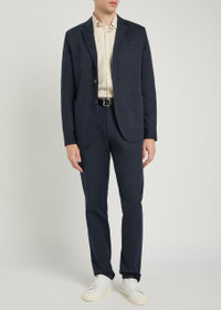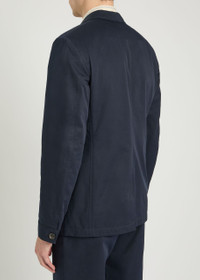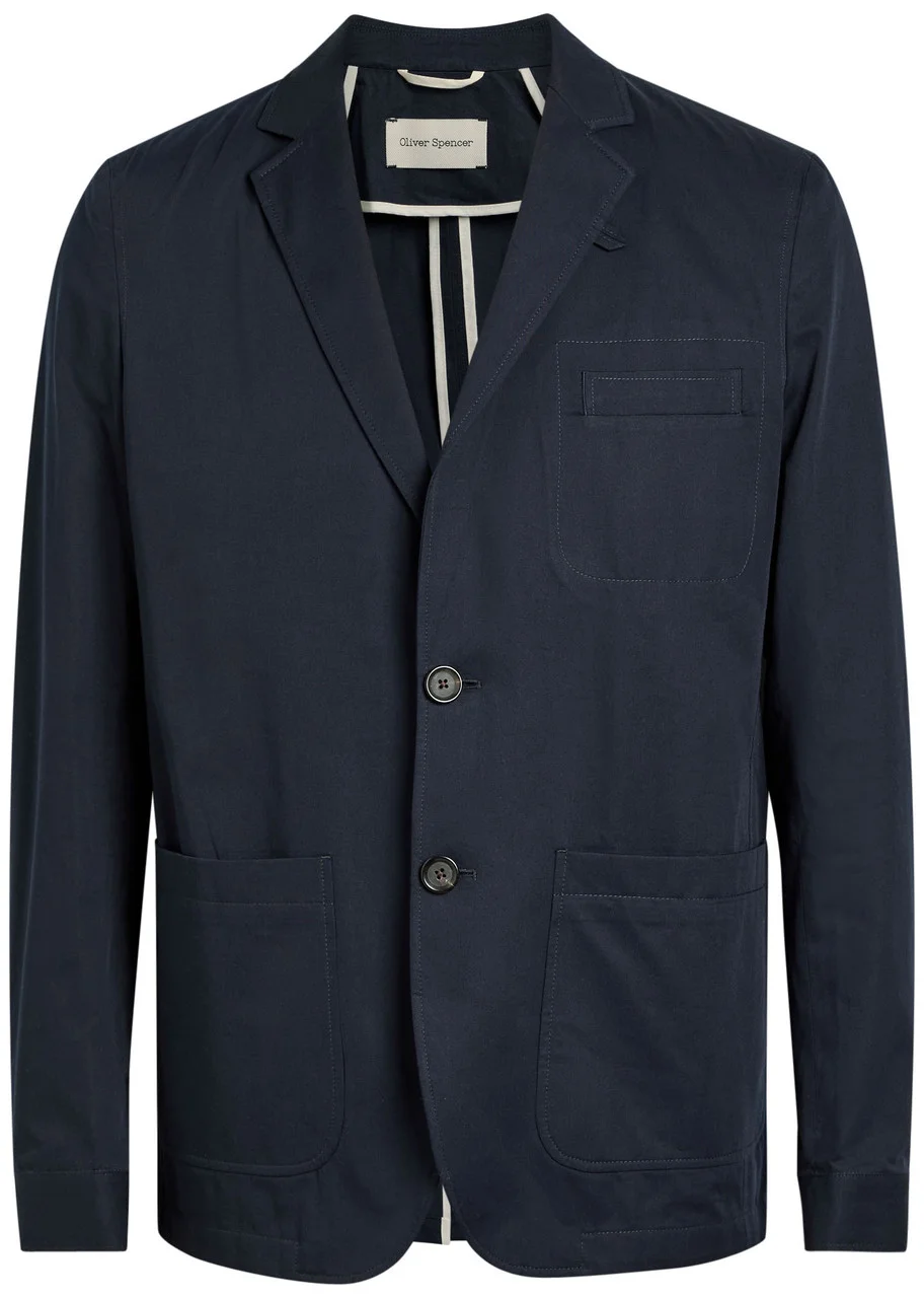 Info & Care Oliver Spencer cotton blazer Notched lapels, slightly padded shoulders, button-fastening cuffs, three front patch pockets, two internal pockets, partially lined Button fastenings at front 100% cotton; lining: 50% cotton, 50% polyester; sleeve lining: 55% acetate, 45% viscose Dry clean Coordinating item available Size & Fit Length shoulder to hem: 28 inches/ 71cm Midweight Regular fit Model is 6'1"/ 185cm, chest size 38 inches and wears a size;IT48