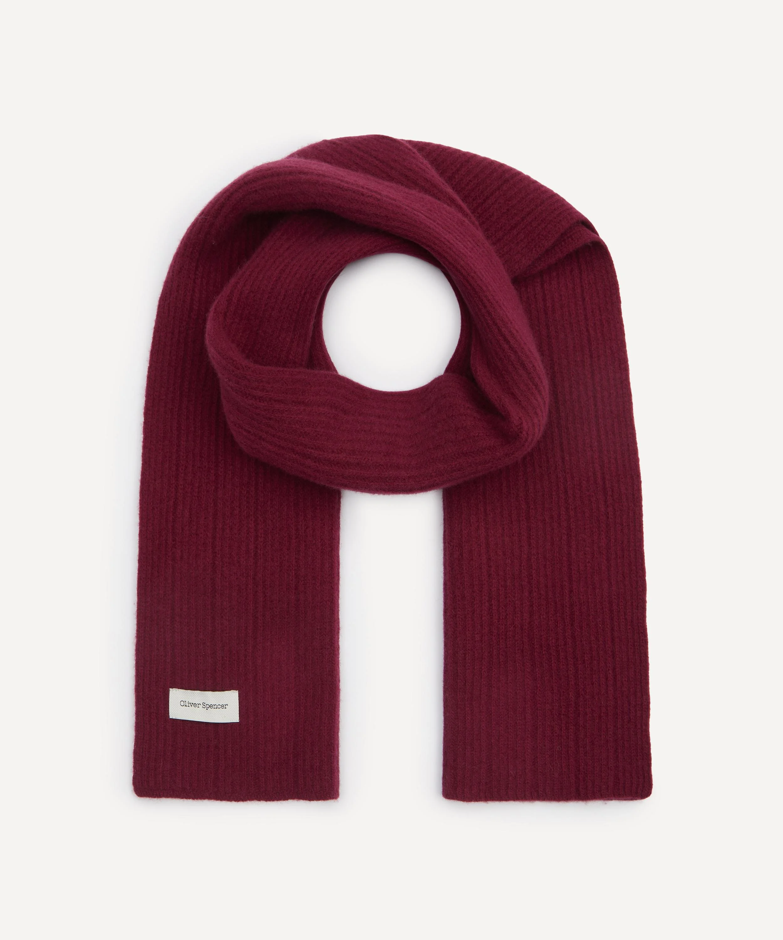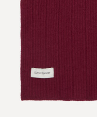 DETAILS Scarf Extra fine wool Overton wine red Ribbed design Logo tab at the corner COMPOSITION & SIZE Wool L: 175cm, W: 30cm