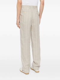 straight-leg linen trousers Highlights - Sand beige/white - Linen/flax - Vertical stripe pattern - Mid-rise - Belt loops - Concealed fly and button fastening - Two side inset pockets - Rear welt pocket - Rear flap pocket - Straight leg Imported Composition Lining: Cotton 50%, Polyester 50% Outer: Linen/Flax 100% SIZE & FIT Model measurements Height 6 ft 2 in(1.87 m) Bust/Chest 34.25 in(87 cm) Hips 36.22 in(92 cm) Waist 29.52 in(75 cm) FittingInformation Designed for a slim tapered leg, offering a close fit that sits just away from the leg with a closer fit towards the ankle Made from a midweight non-stretch fabric This piece fits true to size – take your usual size