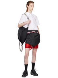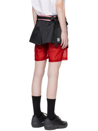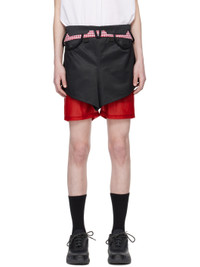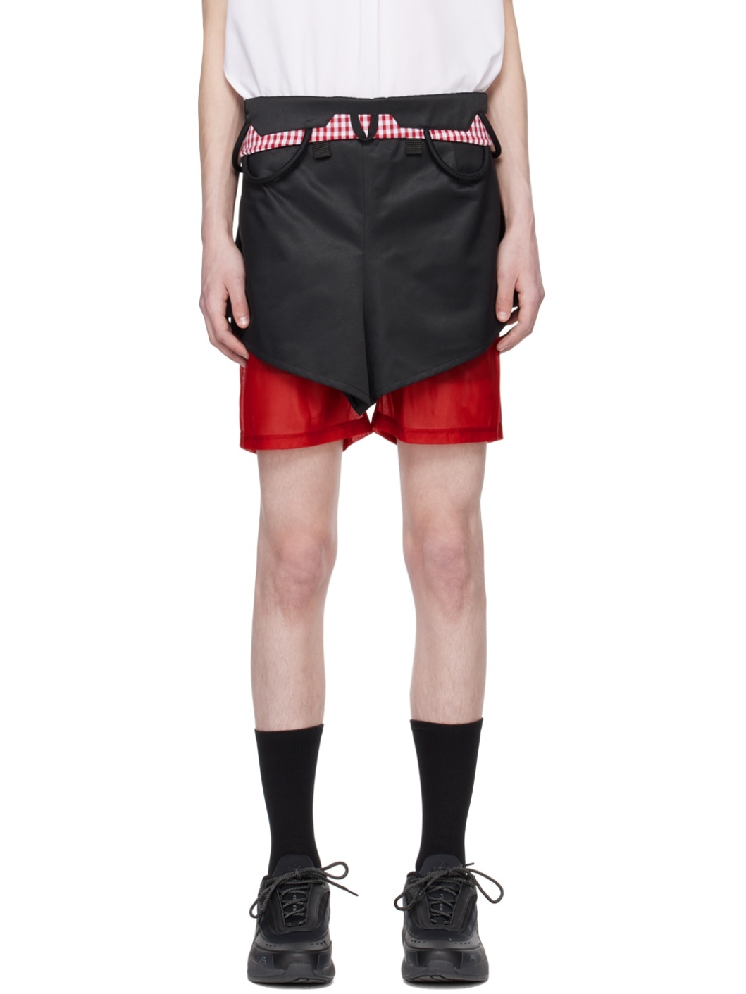 Polyester- and cotton-blend satin skort. · Layered construction · Belt loops and integrated cinch belt · Partially elasticized folded waistband · Grosgrain trim and gingham pattern at waist · Logo bonded at cuff · Locker loop at back waistband · Exposed stretch polyester jersey shorts-style underlay Supplier color: Black/Red gingham