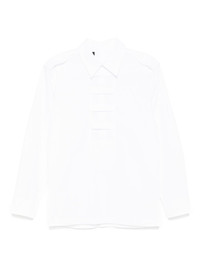 Tie Cage shirt Highlights - White - Front button fastening - Rear button fastening - Buttoned cuffs - Straight hem Made in United Kingdom Composition Cotton 55%, Polyester 45% SIZE & FIT Model measurements Height 6 ft 2 in(1.88 m) Bust/Chest 34.25 in(87 cm) Hips 34.64 in(88 cm) Waist 26.77 in(68 cm) FittingInformation Designed to be unstructured, offering a loose fit throughout Made from a midweight non-stretch fabric