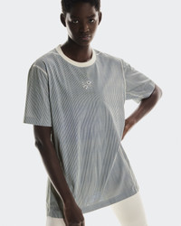 This is no ordinary T-shirt. Designed with LOEWE, technical jersey elevates a wardrobe classic to a workout icon. Materials & Transparency Materials Main Fabric: Polyester (recycled) 100%. Rib: Polyester (recycled) 95%, Elastane 5%. Key features - Weight: /en-us/products/active-t-shirt-loewe-u-1uf1061/unisex/beige-blue-apparel-1UF10614535g - Designed by LOEWE × On - Printed striped fabric - Super-soft breathable jersey - Moisture-wicking fabric - Reflective LOEWE × On logo