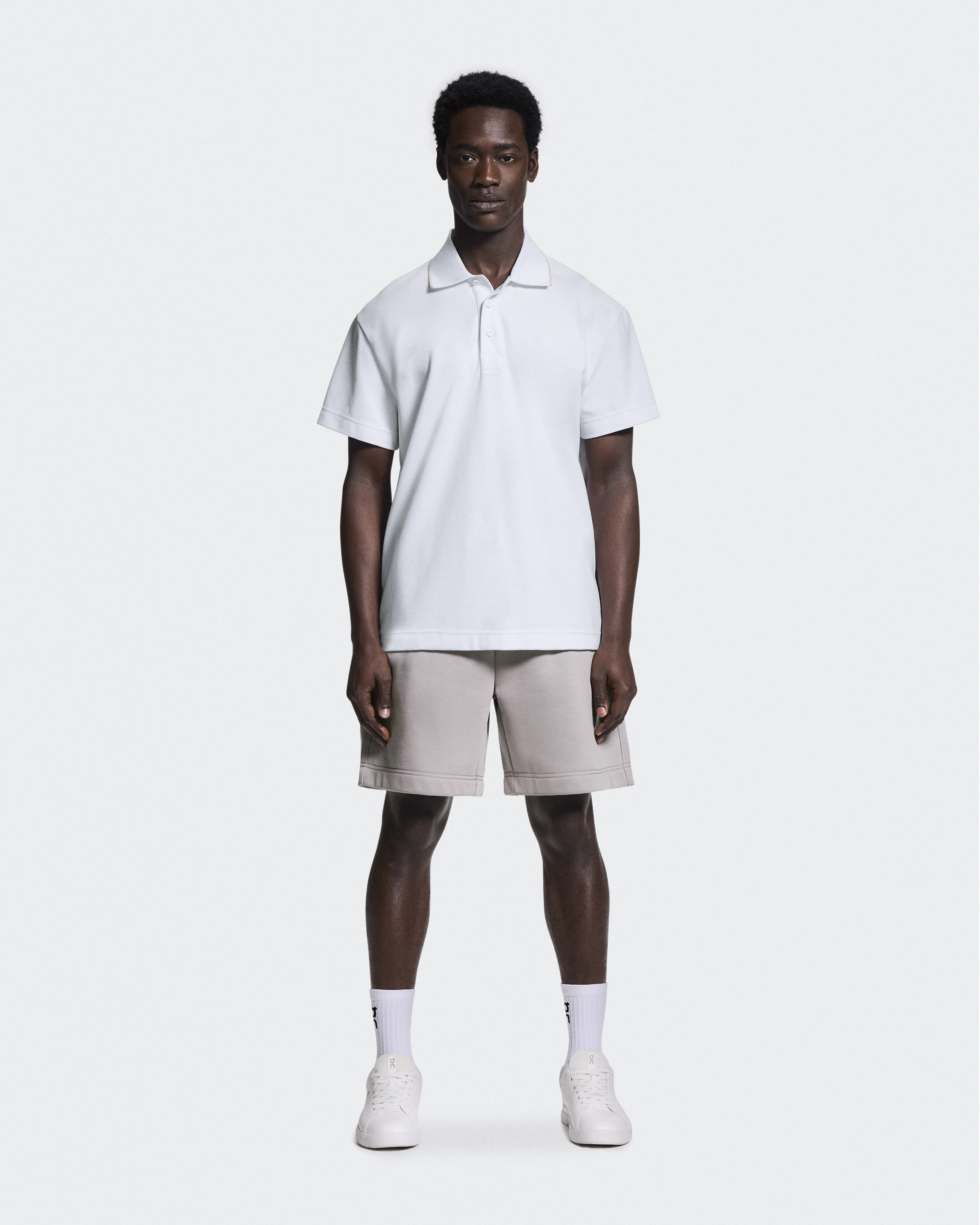 A tennis-inspired polo shirt done the On way. Swiss engineered with quiet branding and super-soft pique knit fabric. Materials & Transparency Materials Collar: Cotton 92%, Polyester 5%, Elastane 3%. Main Fabric: Recycled Polyamide 6 / Nylon 6 53%, Cotton 40%, Elastane 7%. Key features - Weight: /en-us/products/courtside-polo-m-1mf3039/mens/arctic-apparel-1MF30392962g - Side slits on the hemline for easy movement - Relaxed fit for everyday styling - Super-soft pique knit fabric for comfort - Color-tipped collar - On logo on the back - Classic three-button design with On logo detailing