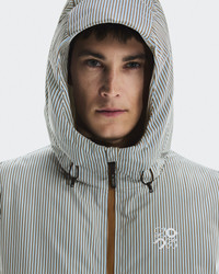 Designed with LOEWE, this insulated, water-resistant puffer vest keeps your core warm and dry. For stylish outdoor adventures. Materials & Transparency Materials Main Fabric: Polyester (CoolPlus®) 78%, PU 22%. Lining: Polyamide (recycled) 100%. Mesh: Polyamide (recycled) 82%, Elastane 18%. Filing: Polyester (recycled) 100%. Padding: Polyester (recycled) 100%. Other Fabric: Polyester 100%. Key features - Weight: /en-us/products/puffer-vest-loewe-u-1uf1069/unisex/beige-blue-apparel-1UF10694535g - Designed by LOEWE × On - Durable water-repellent coating - Striped fabric with slight sheen - Padded insulated layer - Zippered hand pockets - Inner mesh pockets - Adjustable drawstrings on the hem and hood - Reflective LOEWE × On logos