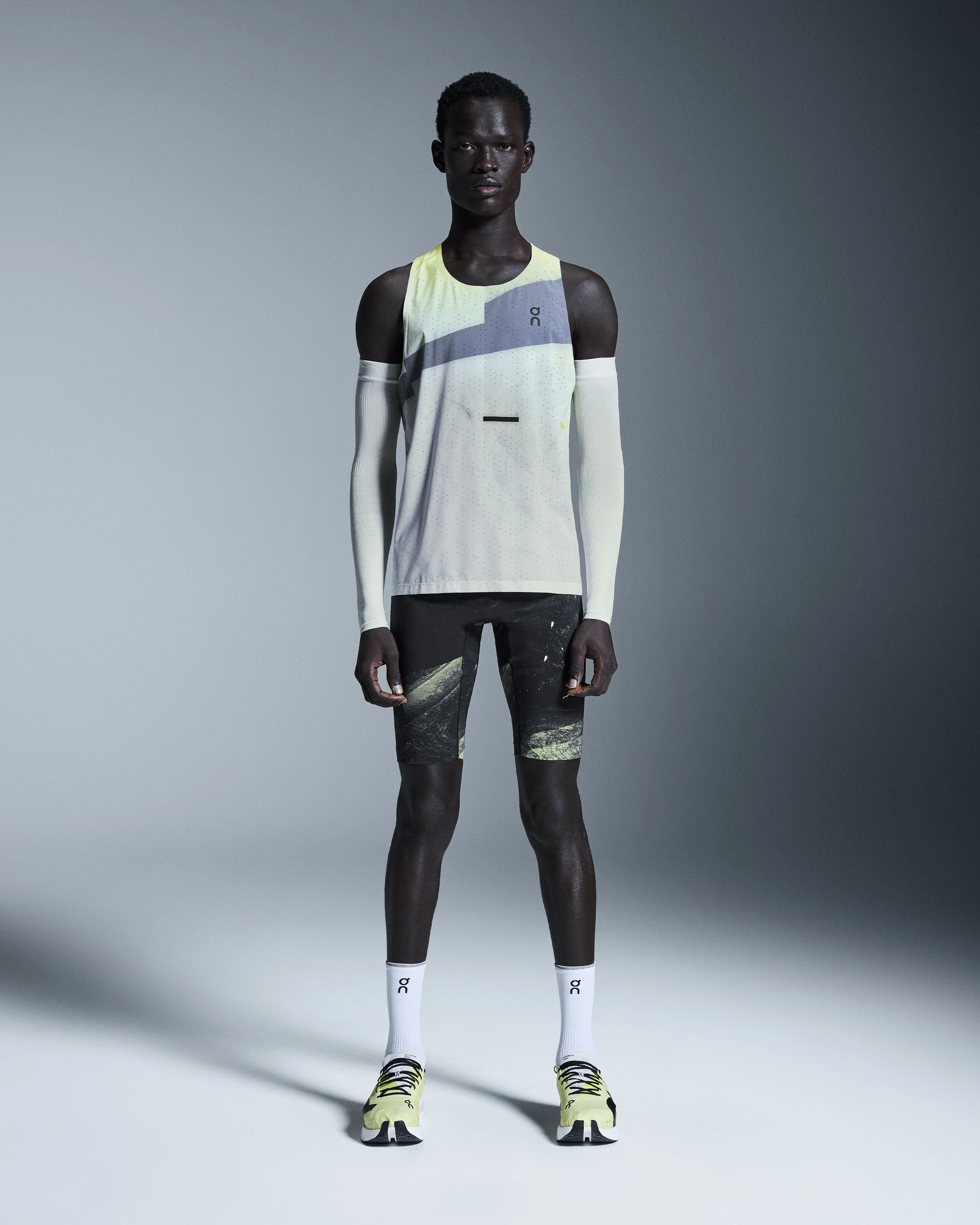 A soft, ultralight racerback with next-level breathability for racing and training without limits. Materials & Transparency Materials Main Fabric: Polyester (recycled) 83%, Elastane 17%. Key features - Weight: Noneg - Designed in collaboration with On athletes - Pleated back construction feels cool, airy and light - Perforated fabric on the front for exceptional breathability - Lightweight materials for a weightless feel - Bonded seams at the arms and neck for next-level comfort - Reflective logo on the chest - Race-day engineering meets fashion-forward design - Swiss-designed graphic detail