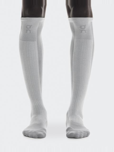 Knee-high merino blend socks with a classic alpine aesthetic. Designed in collaboration with BEAMS and REI Co-op. Materials & Transparency Materials 83% Polyamide (recycled) 13% Wool (merino) 4% Elastane Key features - Weight: Noneg - Extended knee-high coverage for warmth - Co-branded logos from REI, BEAMS, and On - Cushioned ribbing from forefoot to shin - Moisture-wicking and quick-drying - Supportive fit at the ankle and arch - Merino wool footbed for all-day comfort