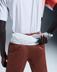 The technical trail running belt with 500ml Hydrapak that adjusts to your body. Sleek and streamlined. Materials & Transparency Key features - Weight: Noneg - Full range of stretch movement - Includes a 500ml Hydrapak Soft Flask with locking nozzle - Elasticated mesh side pockets - Bungee cords for pole attachment - Front pouch has room for phone and other items - Fully ventilated construction - Reflective logo and trims - Targeted padding to minimize pressure points