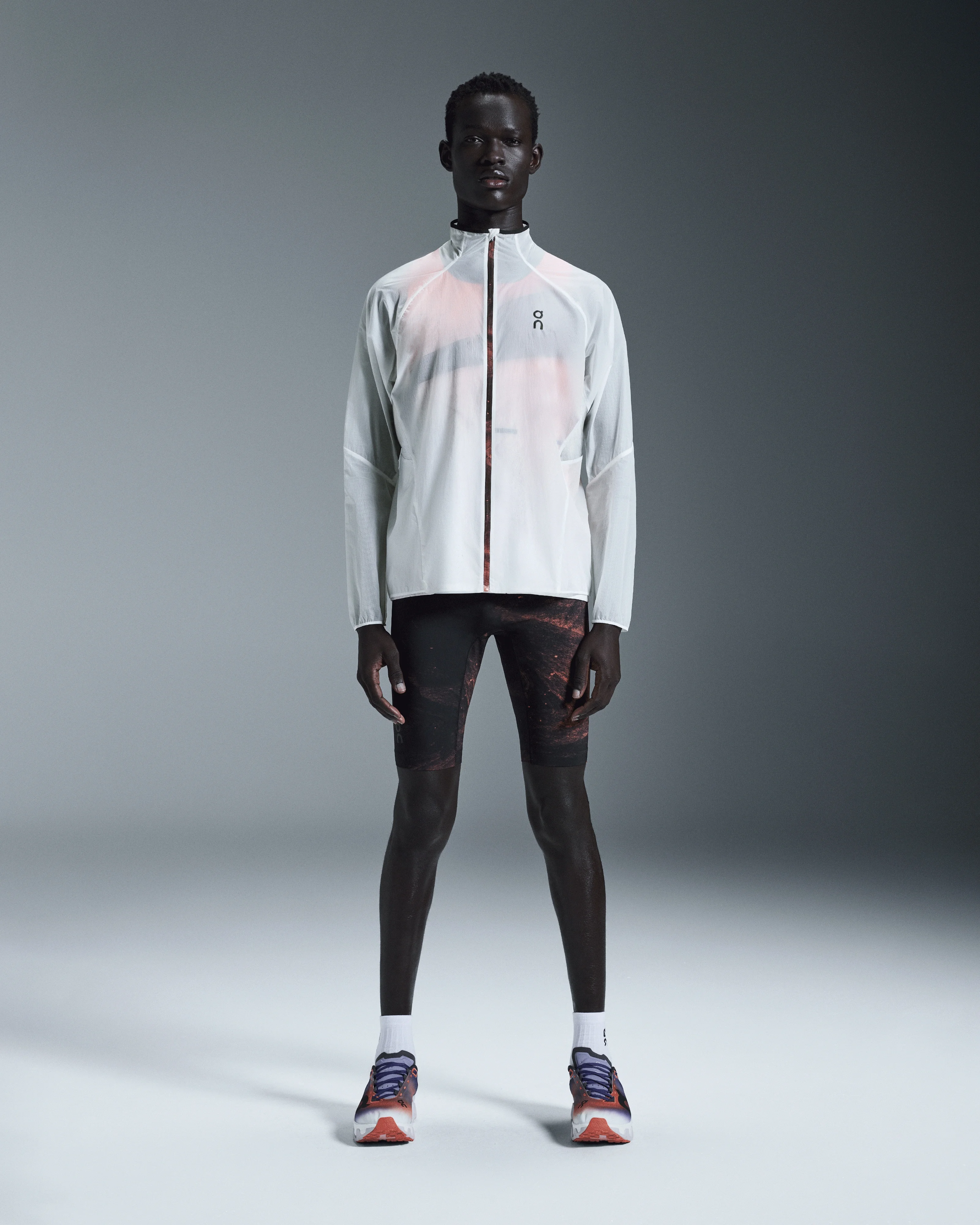 Ultralight and packable. This is the all-weather, water-repellent jacket that ticks all the boxes – and tackles all the elements. Materials & Transparency Materials Main Fabric: 100% Polyamide (Recycled Nylon) Mesh Inserts: 87% Polyamide (Recycled), 13% Elastane Key features - Weight: Noneg - Every inch of this breathable jacket is athlete-approved - Lightweight fabrics for easy, fluid movement - Windproof construction to face the elements - Water repellent surface for added protection - Integrated pocket for packing it all away - Spiral dart elbow construction for added mobility - Feather light so there's nothing weighing you down - Reflective for when nighttime runs are a must