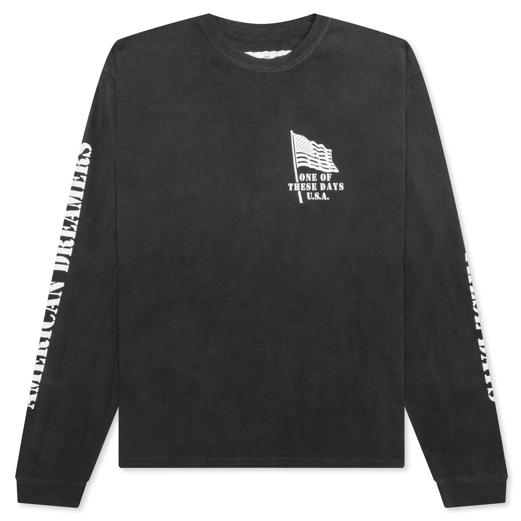 AMERICAN FLAG COWBOY LONG SLEEVE TEE - WASHED BLACK