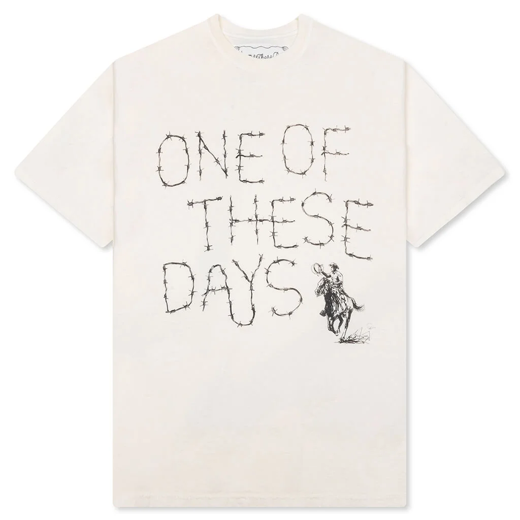 One of These Days, known for its Western-inspired apparel, introduces the Barbed T-Shirt. Crafted from cotton, this tee is pre-shrunk and features a vintage wash finish. Designed with a classic crew neckline, Western-style screen-printed graphics are showcased across the front. 02C 04 064 - 100% Cotton - Regular fit - Pre-shrunk - Crew neckline - Ribbed collar - Screen-printed graphics - Vintage wash finish - Style No: 02C-04-064-BONE