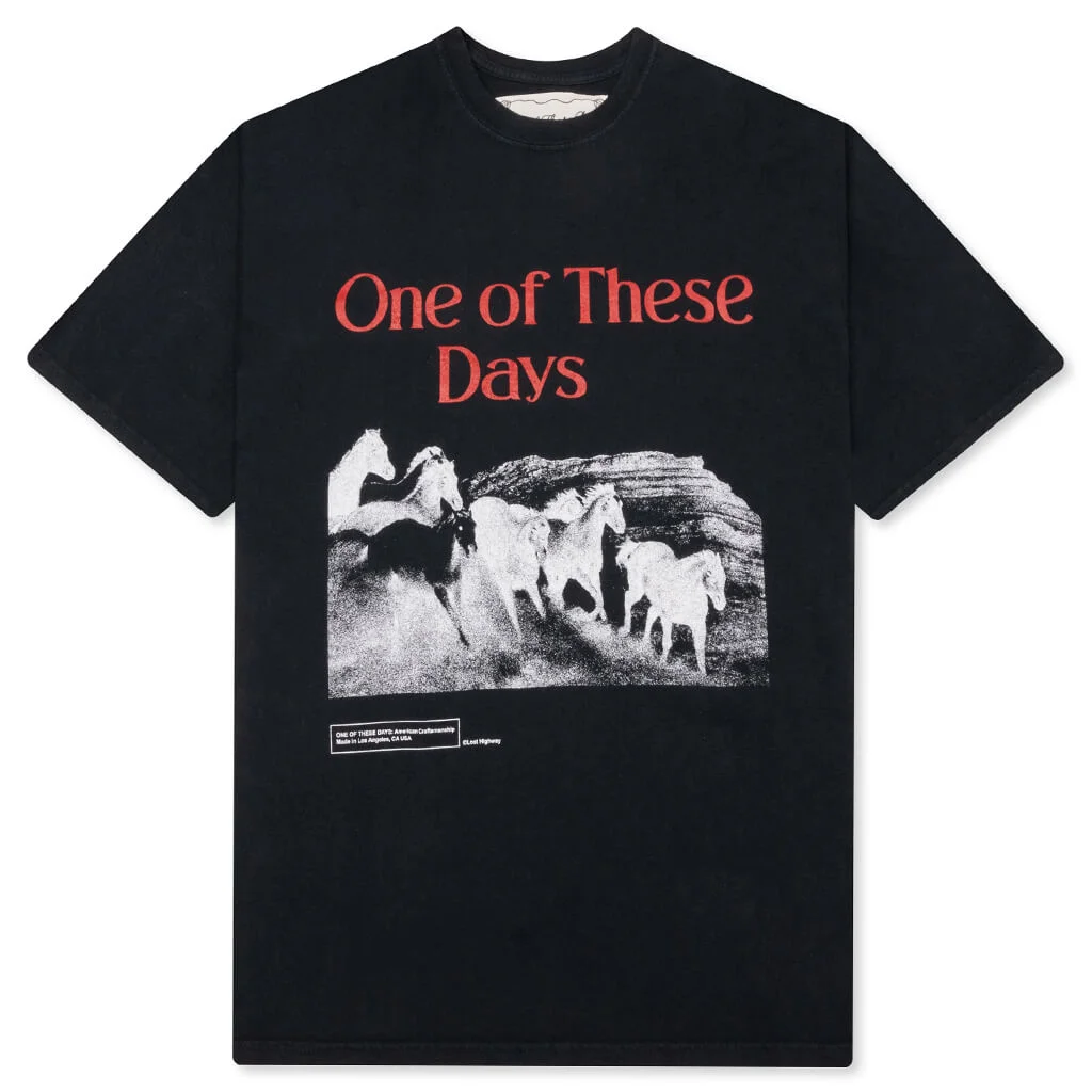 One of These Days, known for its Western-inspired apparel, introduces the Glad You're Here With Me T-Shirt. Crafted from cotton, this tee is pre-shrunk and features a vintage wash finish. Designed with a classic crew neckline, Western-style screen-printed graphics are showcased across the front. 02C 04 067 - 100% Cotton - Regular fit - Pre-shrunk - Crew neckline - Ribbed collar - Screen-printed graphics - Vintage wash finish - Style No: 02C-04-067-WBLK