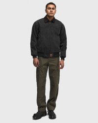 The casual cut and high-quality workmanship make the RANCH JACKET from One of these Days the perfect everyday companion. Western details on the front and back yoke authentically round off the look. - Heavy canvas made from 100% cotton - Enzyme wash - Western details on the front and back yoke - Corduroy collar - Ribbed cuffs and hem - Cantonese flannel lining with digital print - Logo patch on the hem - Side pockets - Triple stitching for durability - Central front zipper Article number: 01C-14-001-WORN-BLACK Gender: men Color: WORN BLACK Material: 100% Cotton