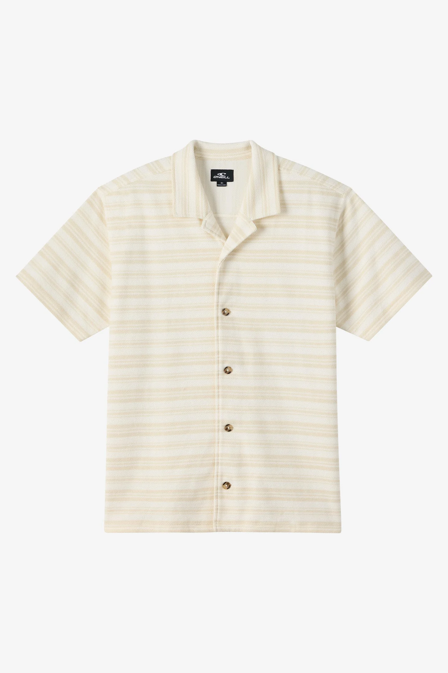 This camp collar shirt features a refined herringbone jacquard pattern in a substantial cotton-poly blend with a standard fit. - Men's Standard Fit Button Front Camp Collar Shirt - 60% Cotton, 40% Polyester, Weight: 280 GSM - 29'' HPS Length - Striped Herringbone Jacquard Pattern - Straight Hem With Side Slits - Logo Flag Label SKU: SU2610301|TOFU