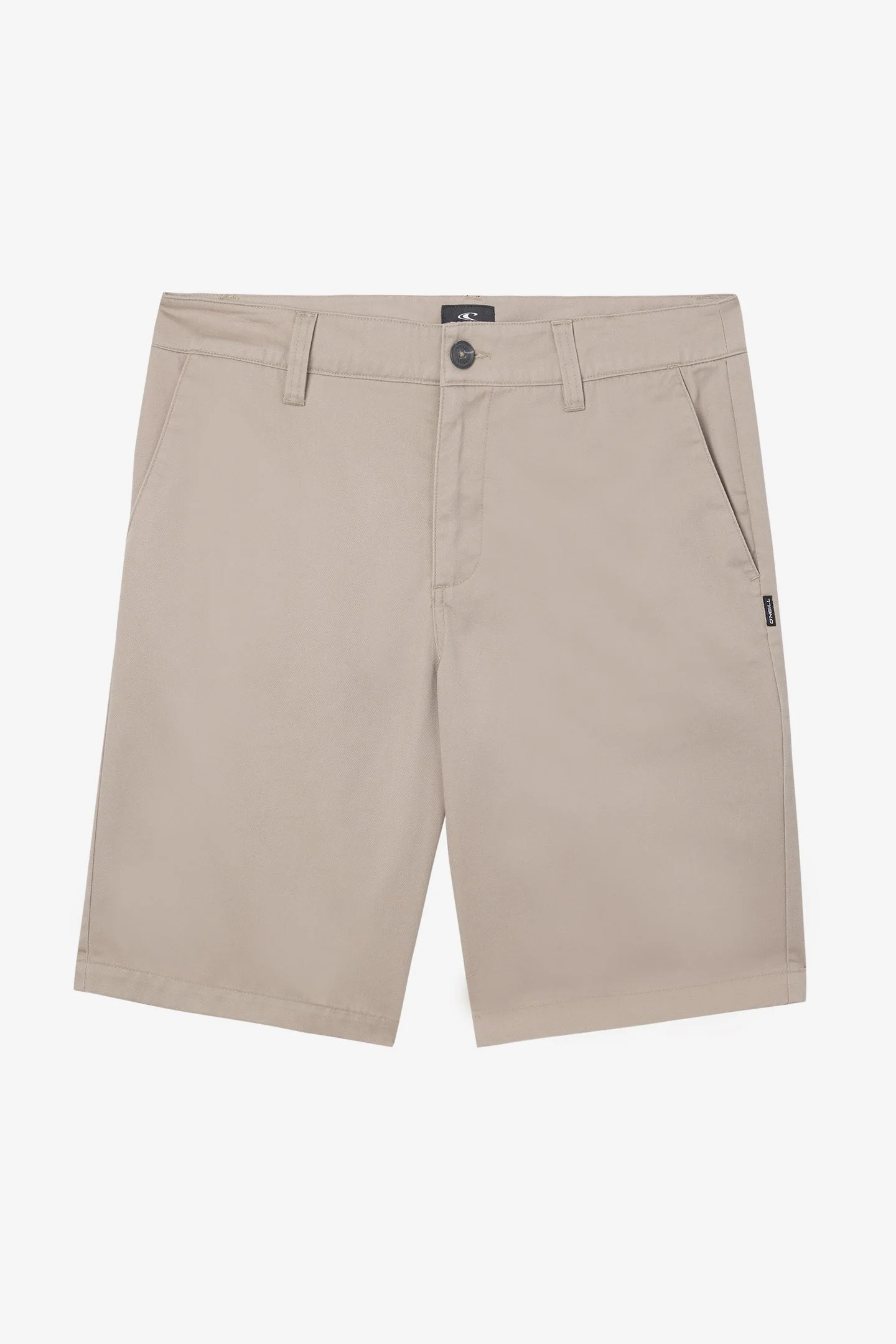 Our classic chino shorts with a relaxed fit. Made with a poly-cotton twill blend, perfect for cruising around town. - Men's Relaxed Fit Chino Short - 65% Polyester, 35% Cotton Twill, 240 GSM - 22'' Outseam - Front Slash Pockets - Back Welt Pockets With Buttons - Single Welt Cell Pocket at Back Left Leg - Buckle Button Front Closure - Back Welt and Side Seam Labels SKU: SP2618A10|KHA