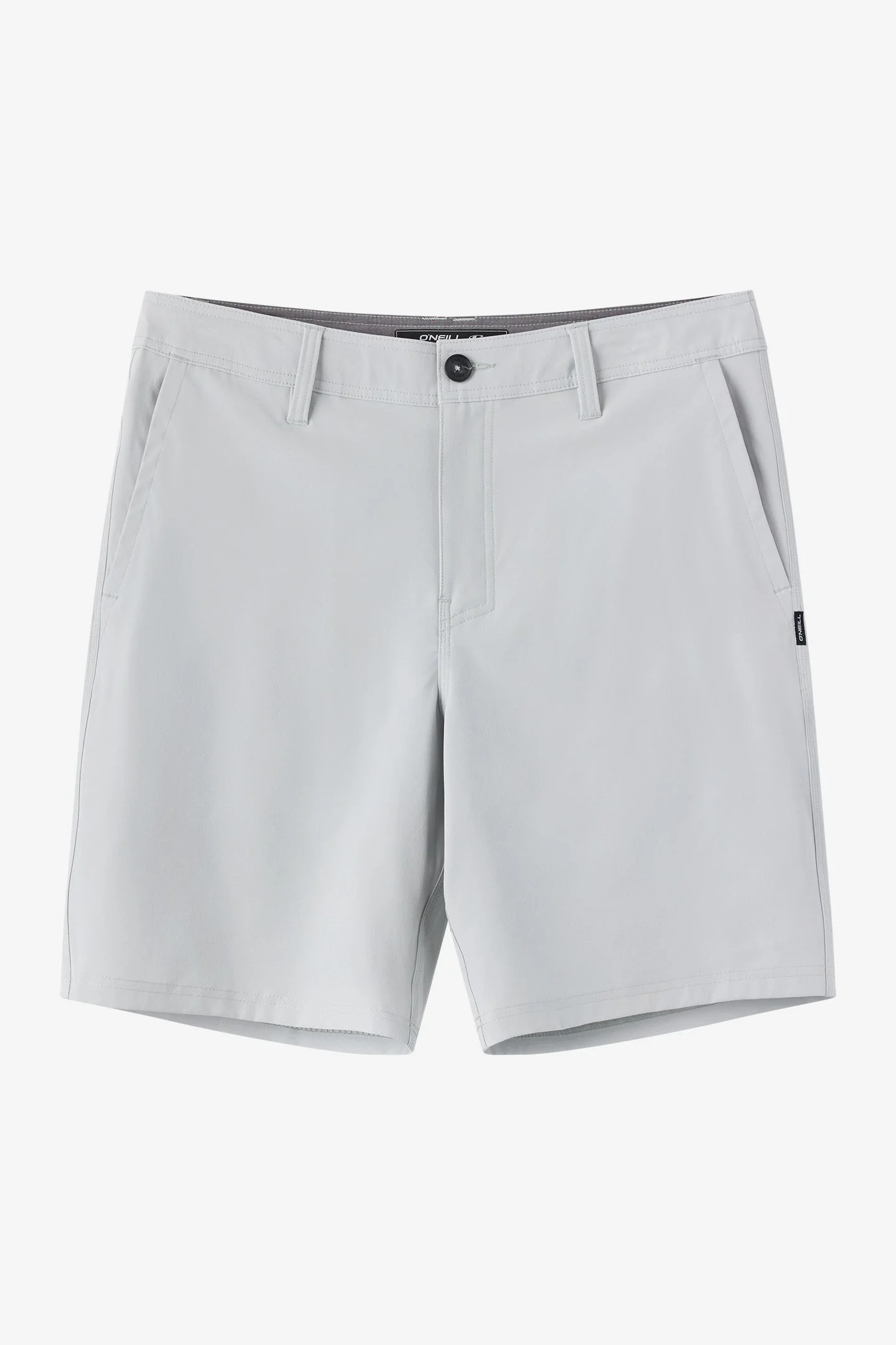 Cruise in total comfort in any environment. Hyperfreak stretch adds flexibility, while O'Neill Hyperdry DWR repels moisture and speeds up drying time. - Men's Fixed Waist Hybrid Short - 19'' Outseam, 9'' Inseam – Above-the-Knee Fit - Hyperfreak Stretch Heather; 94% Polyester, 6% Elastane - Weight: 195 GSM - O'Neill Hyperdry DWR Technology - Zipper Fly - Internal Tunnel Drawcord - Front Hand Pockets With Zippers - Back Welt Pockets SKU: SP2618A12|HHRS