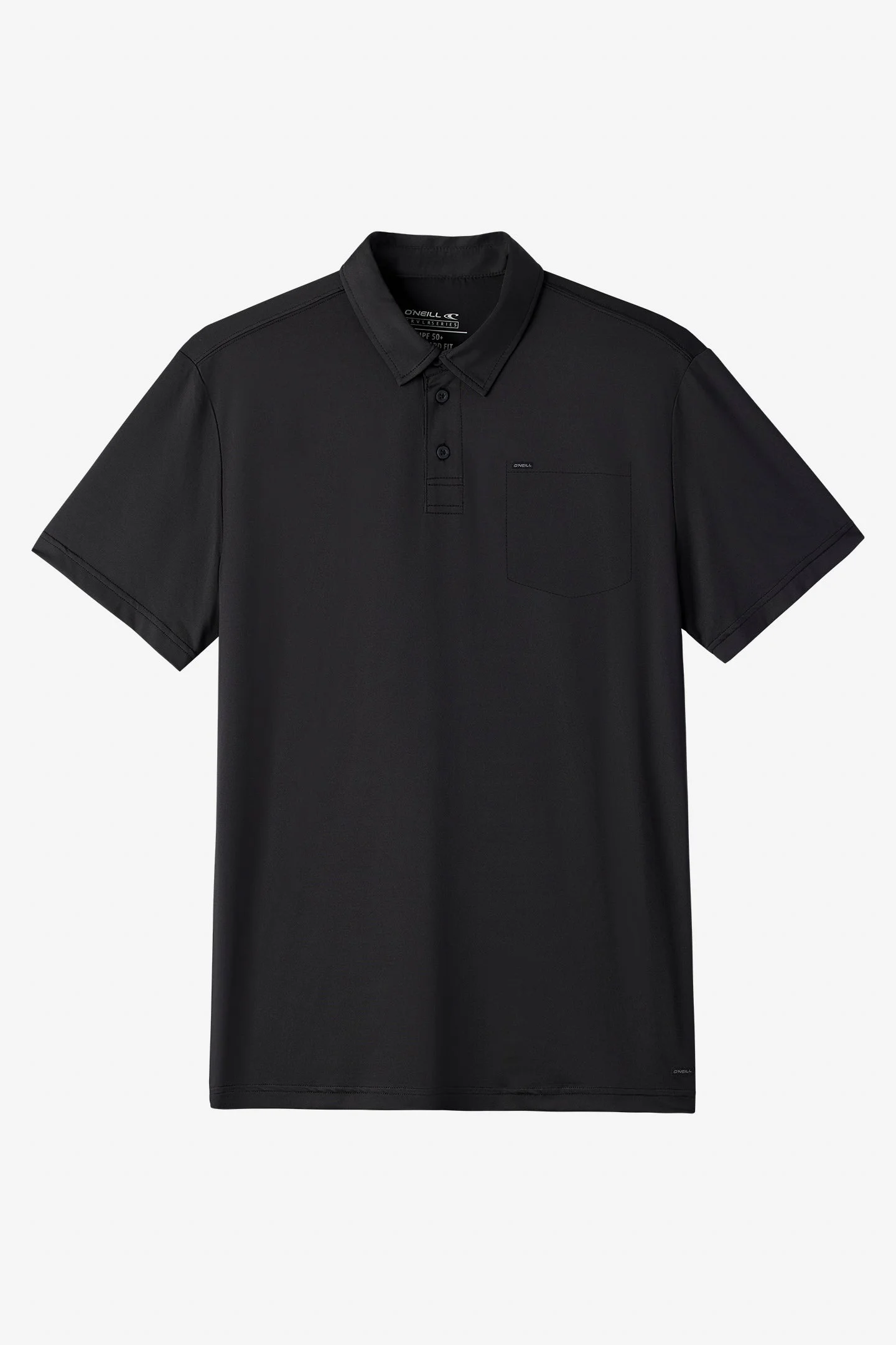 This is a lightweight active polo shirt that's perfect for beach days, golf or casual wear. Key features include O'Neill Hyperdry moisture-wicking, UPF 50+ sun protection and our O'Neill smart shield fabric. The standard fit is true to size, not too roomy but not too tight. - Men's UPF polo shirt - 170 GSM - Standard fit - O'Neill Smart Shield fabric - Lightweight feel - UPF 50+ Sun protection - O'Neill Hyperdry moisture wicking - Antimicrobial treatment - Button closure with collar - 40% Recycled Poly, 51% Polyester, 9% Elastane Blend SKU: SP5103104|BLK