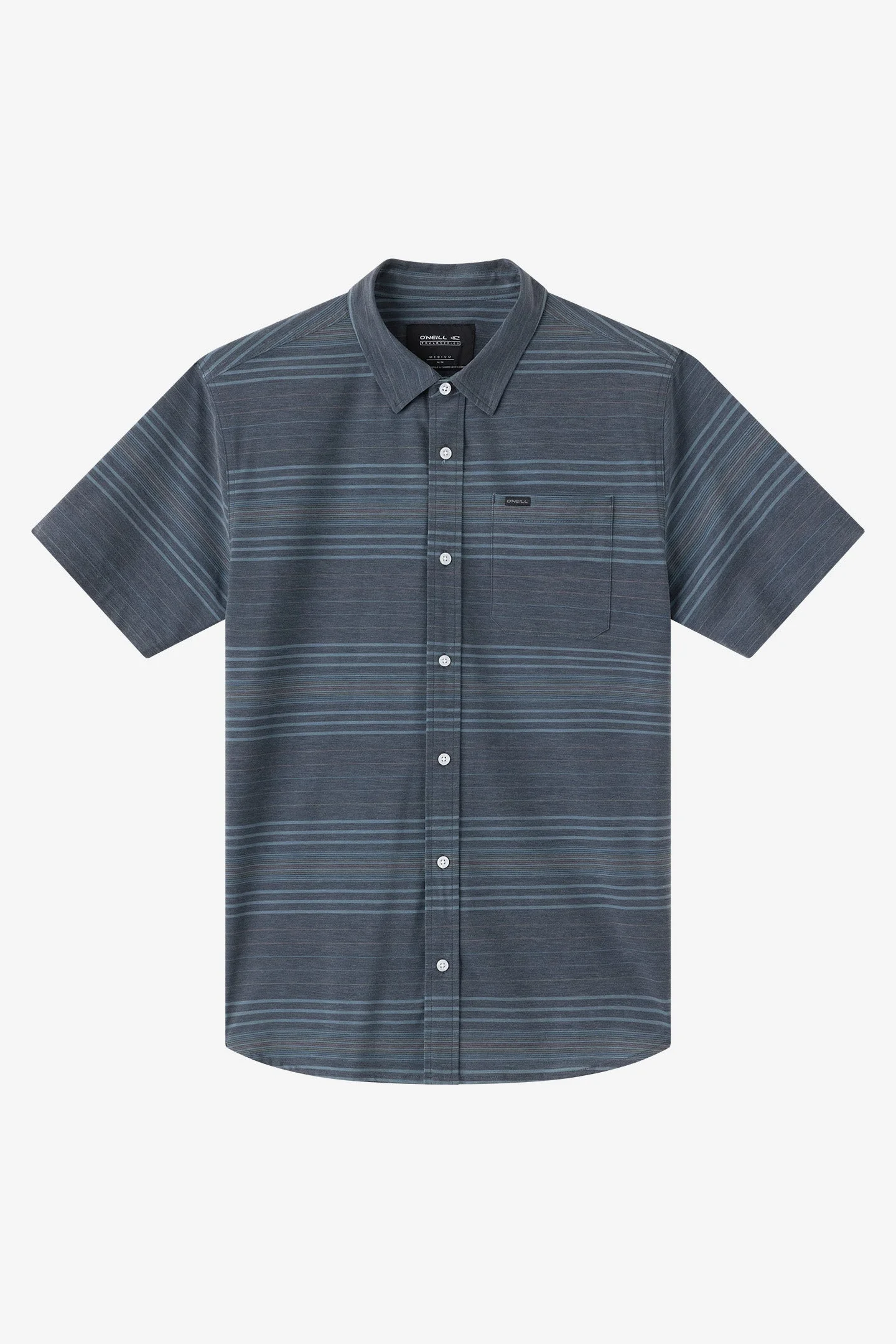Hike the trail or explore the city in this lightweight active button-up. Features like UPF 50+ sun protection and Hyperdry moisture wicking will keep you cool and comfortable all day long. The standard fit is true to size, not too roomy but not too tight. - Standard Fit Woven Shirt - 69% Polyester, 22% Cotton, 9% Elastane, 125 GSM - UPF 50+ - O'Neill Hyperdry Moisture Wicking - Sunglass Cleaning Cloth At Interior Hem - Locker Loop - All Over Print SKU: SP2610420M|BLK