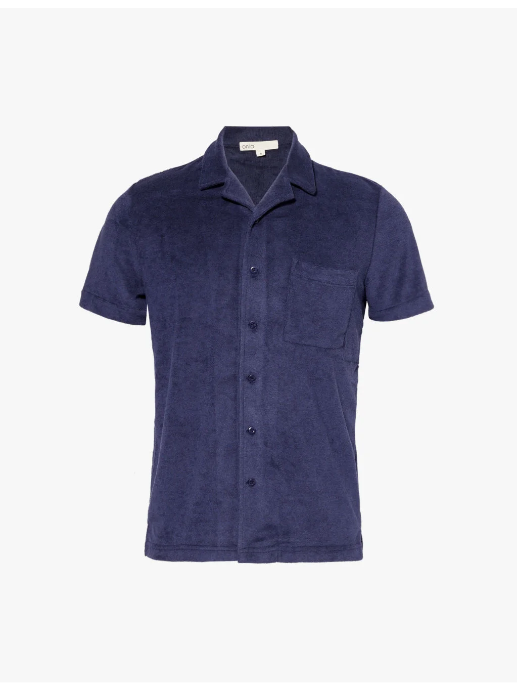PRODUCT DETAILS - Onia cotton-blend shirt - 51% cotton, 34% rayon, 15% polyester - Exposed button fastenings at front - Camp collar - Regular fit, notch collar, short sleeves patch pocket at chest, logo tab at side, slits at sides, cotton towelling texture - Hand wash cold - Model is 6ft 2in/1.88m and wears a size medium - Lightweight, slight stretch Ref: R04368795
