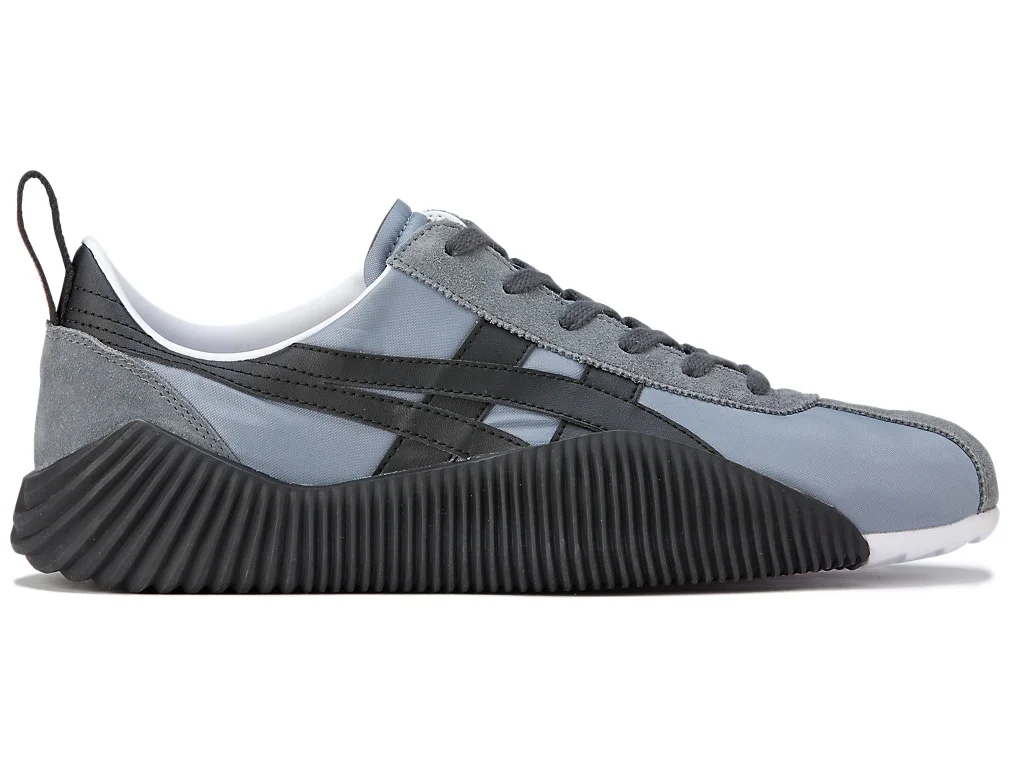 Inspired by the design of spiked track shoes from the 1970s, we introduce this new model in a leather and fabric combination with chic vintage touches. The slim silhouette of the toe is paired with a voluminous sole, similar to that of the 1970s track shoes. The sole has been updated to better suit a modern lifestyle; it is constructed with a combination of lightweight sponge and rubber. The oversized Onitsuka Tiger Stripes in contrasting colors accentuate the classic upper design. - Fabric and leather upper - fuzeGEL technology in heel for superior cushioning - OrthoLite X40 inner sole for bounce-like fit and soft ground impact DETAIL INFORMATION - Brand: Onitsuka Tiger - Country of Manufacture: Vietnam - Part No: 1183B257 - 1183B257.020 SHEET ROCK/BLACK - Upper material/surface: Synthetic fiber×Leather×Faux leather - Outer Sole Material: RUBBER