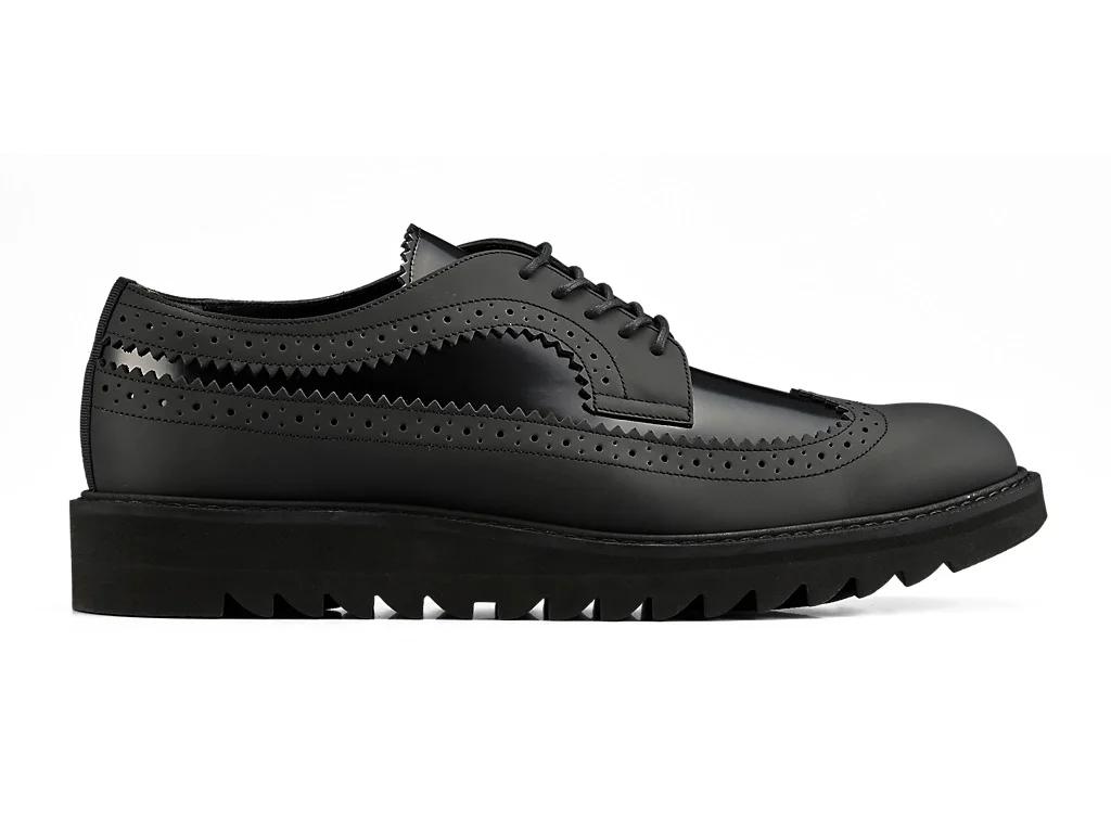 A brogue shoe designed after the EMEROR™ golf shoe, originally released in 1970. The upper is made from domestic leather crafted in Himeji, one of Japan's most renowned leather-producing regions, using the world-famous "Kobe Beef" leather, finished by Japanese artisans employing traditional techniques. While maintaining the classic elegance of leather shoes that THE ONITSUKA is known for, we've focused on enhancing comfort. Special attention has been given to improving flexibility and cushioning, resulting in a lighter and more comfortable fit. The midsole is made with highly responsive foam material from heel to toe, maximizing both cushioning and flexibility. The heel of the sole is equipped with Alpha Gel Foam to enhance shock absorption. The insole design incorporates foam materials of different firmness levels, maintaining cushioning while adding support to reduce arch collapse and heel instability. The outsole is made from a durable rubber sponge that combines both durability and cushioning. The thick shark sole design, inspired by the soles of past archive training shoes, features circular patterns on the forefoot and heel. -Made in Japan DETAIL INFORMATION - Brand: THE ONITSUKA - Country of Manufacture: Japan - Part No: 1181A586 - 1181A586.002 BLACK/BLACK - Upper material/surface: LEATHER - Outer Sole Material: RUBBER