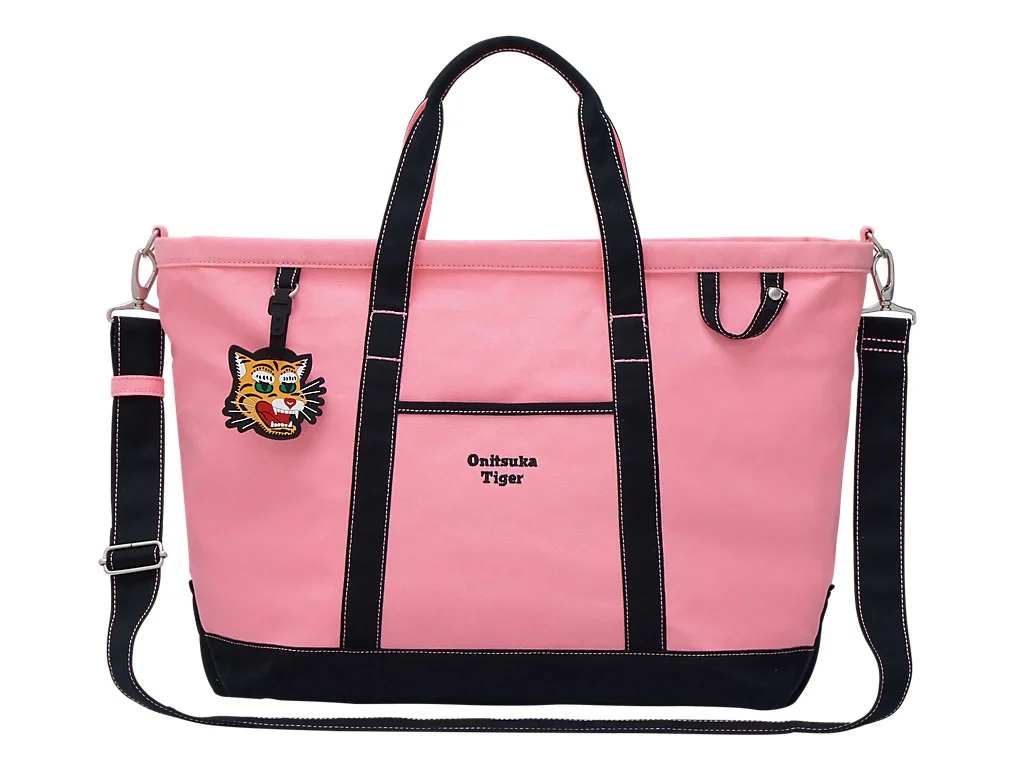 A canvas bag featuring durable construction and a playful two-tone color scheme. ■Design Contrast colors are used for the straps, handles, and bottom, adding a design accent. The embroidered brand logo adds a subtle touch of luxury. ■Material Made from durable, heavy-duty cotton canvas fabric. ■Details ・Zippered opening ・Removable shoulder strap ・Versatile 2-way style for handheld or shoulder use ・Front pocket with embroidered brand name ・Interior pocket included ・Hook on the right front side for attaching items such as umbrellas, keys, or decorative accessories ・Comes with a silicone tiger charm Capacity :Approx25L Size ( measurement : cm ) : W42×H35×18 DETAIL INFORMATION - Brand: Onitsuka Tiger - Country of Manufacture: Vietnam - Part No: 3183B226 - 3183B226.700 PINK/BLACK - Quality: Cotton100%