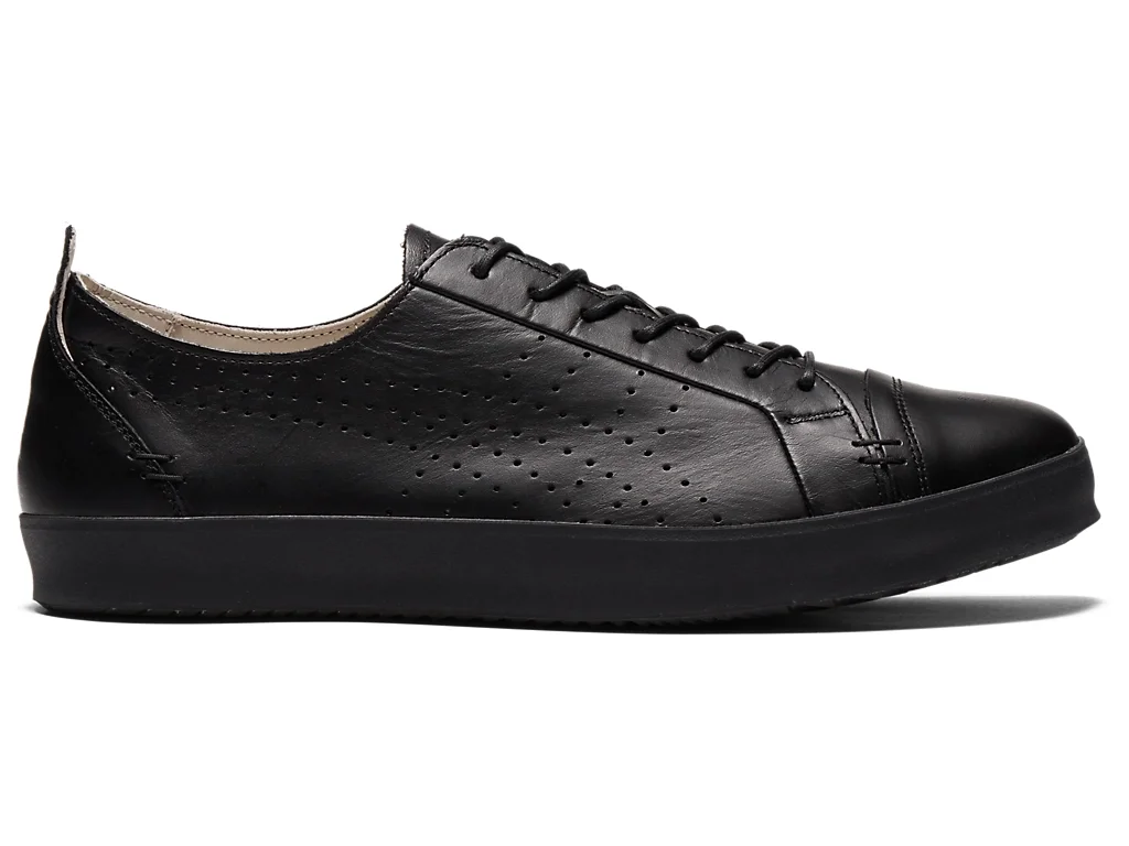 The "COLESNE LO NM" is a low-cut model inspired by classic basketball shoes. While preserving the original design that embodies the Onitsuka Tiger style, it offers a sophisticated look that matches contemporary fashion. The Onitsuka Tiger stripes, expressed through punching, and the hand-sewn stitching at the front and back add accents that seamlessly blend into any outfit. The upper is made of Japanese smooth leather, with natural leather on the inside, ensuring a comfortable fit. The removable molded insole provides both cushioning and stability, ensuring a comfortable wear even for extended periods. Combining fashion and comfort, the "COLESNE LO NM" enhances your look in both business and casual settings, making it a versatile addition to any wardrobe. - Made in Japan DETAIL INFORMATION - Brand: NIPPON MADE - Country of Manufacture: Japan - Part No: 1183C191 - 1183C191.001 BLACK/BLACK - Upper material/surface: LEATHER - Outer Sole Material: RUBBER
