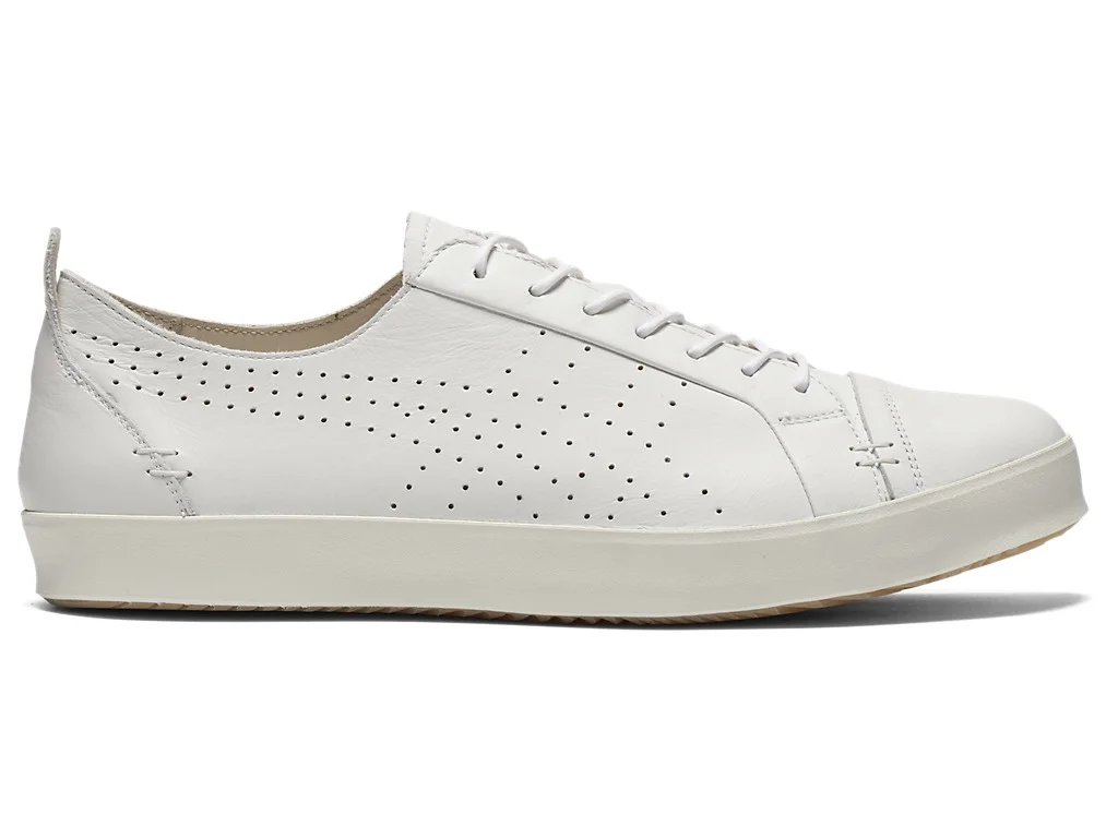 The "COLESNE LO NM" is a low-cut model inspired by classic basketball shoes. While preserving the original design that embodies the Onitsuka Tiger style, it offers a sophisticated look that matches contemporary fashion. The Onitsuka Tiger stripes, expressed through punching, and the hand-sewn stitching at the front and back add accents that seamlessly blend into any outfit. The upper is made of Japanese smooth leather, with natural leather on the inside, ensuring a comfortable fit. The removable molded insole provides both cushioning and stability, ensuring a comfortable wear even for extended periods. Combining fashion and comfort, the "COLESNE LO NM" enhances your look in both business and casual settings, making it a versatile addition to any wardrobe. - Made in Japan DETAIL INFORMATION - Brand: NIPPON MADE - Country of Manufacture: Japan - Part No: 1183C191 - 1183C191.100 WHITE/WHITE - Upper material/surface: LEATHER - Outer Sole Material: RUBBER