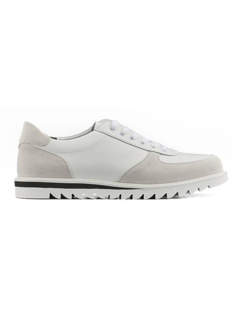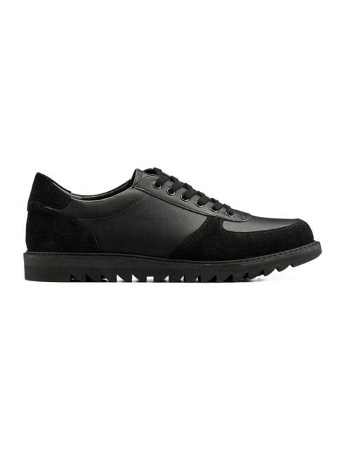 A model based on an archive closed-lacing court shoe. The main parts of the upper are made from domestic leather. The glass leather is finished with a matte texture by pressing a grain pattern on top, reducing the gloss for a more subtle look. While maintaining the classic elegance of leather shoes that THE ONITSUKA is known for, we have focused on further enhancing comfort. Special emphasis has been placed on improving flexibility and cushioning, resulting in a lighter and more comfortable fit. Flexibility has been improved through the materials used in the upper lining and insole. The heel of the sole is equipped with αGEL Foam to enhance shock absorption. The insole combines foam materials of varying firmness, ensuring cushioning while providing support to reduce arch collapse and heel instability. The outsole is made from rubber sponge, which combines both durability and cushioning. The thick shark sole design features circular patterns on the forefoot and heel. -Made in Japan DETAIL INFORMATION - Brand: THE ONITSUKA - Country of Manufacture: Japan - Part No: 1183C413 - 1183C413.001 BLACK/BLACK - Upper material/surface: LEATHER - Outer Sole Material: RUBBER