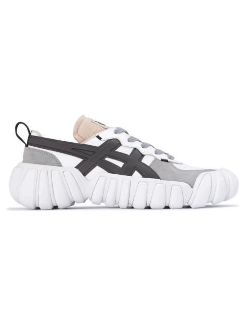 The DENTIGRE LS model is a modern take on our iconic heritage tennis shoes. Starting with a chunky, rugged outsole, the DENTIGRE LS style dons our Onitsuka Tiger Stripes on mixed-media upper with felt shoe tongue. Shades of gray add texture and dimension to this already powerful fashion statement. - Mixed Media Upper - FLYTEFOAM Propel midsole provides better cushioning and resilience - fuzeGEL technology on heel for better cushioning - OrthoLite X40 inner sole delivers a bounce-like fit for soft ground impact with comfort DETAIL INFORMATION - Brand: Onitsuka Tiger - Country of Manufacture: Vietnam - Part No: 1183B421 - 1183B421.103 WHITE/WHITE - Upper material/surface: LEATHER - Outer Sole Material: RUBBER
