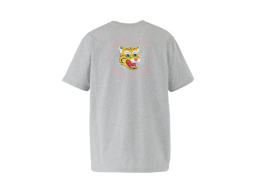A T-shirt with an original tiger motif printed on the back and encircled by embroidered text. - Odor-resistant antibacterial treatment - Standard fit 【Size ( measurement : cm )】 XS ) Centre back length: 64 Shoulder to Shoulder: 41 Chest: 46 Sleeve Length: 18 S ) Centre back length: 66 Shoulder to Shoulder: 43 Chest: 49 Sleeve Length: 19 M ) Centre back length: 68 Shoulder to Shoulder: 45 Chest: 52 Sleeve Length: 20 L ) Centre back length: 70 Shoulder to Shoulder: 47 Chest: 55 Sleeve Length: 21 XL ) Centre back length: 72 Shoulder to Shoulder: 49 Chest: 58 Sleeve Length: 22 2XL ) Centre back length: 74 Shoulder to Shoulder: 51 Chest: 61 Sleeve Length: 23 DETAIL INFORMATION - Brand: Onitsuka Tiger - Country of Manufacture: Thailand - Part No: 2183B181 - 2183B181.020 HEATHER GREY - Quality: Cotton100%