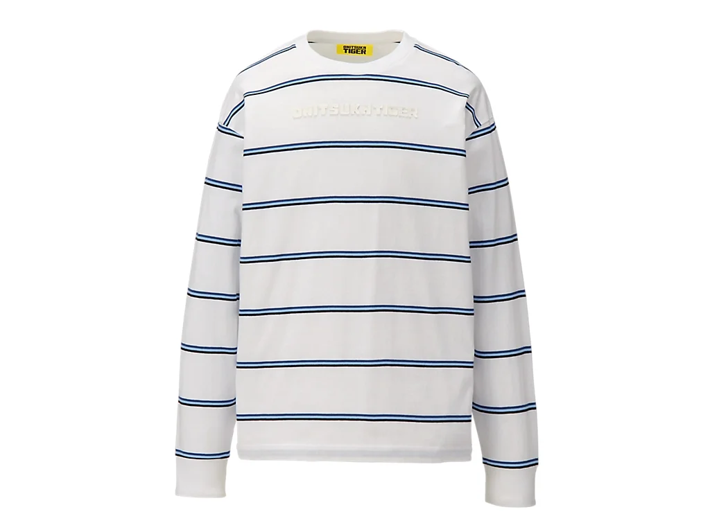 ONITSUKA TIGER DENIVITA™ A long-sleeve T-shirt that combines casual style with elegance. The simple striped design complements a variety of outfits. ■Design The white-based stripes provide a casual yet refined impression. The front features the ONITSUKA TIGER logo as a patch made from slightly thicker fabric, creating a design that is understated yet distinctive. ■Detail ・Made from soft-touch 100% cotton ・The collar is ribbed for a snug fit ・The sleeves also use the same fabric for a cohesive finish ■ONITSUKA TIGER DENIVITA™ 'DENIVITA™,' a clothing range inspired by denim. Iconic designs and colors will turn everyday moments into something special. Special Page 【Size ( measurement : cm )】 XS ) Centre back length: 66.75 Shoulder to Shoulder: 52 Chest: 53 Sleeve Length: 58 S ) Centre back length: 67.5 Shoulder to Shoulder: 54 Chest: 56 Sleeve Length: 59 M ) Centre back length: 69 Shoulder to Shoulder: 56 Chest: 59 Sleeve Length: 61 L ) Centre back length: 70.5 Shoulder to Shoulder: 58 Chest: 62 Sleeve Length: 63 XL ) Centre back length: 72 Shoulder to Shoulder: 60 Chest: 65 Sleeve Length: 65 DETAIL INFORMATION - Brand: ONITSUKA TIGER - Country of Manufacture: China - Part No: 2181B025 - 2181B025.100 WHITE - Quality: Cotton100%