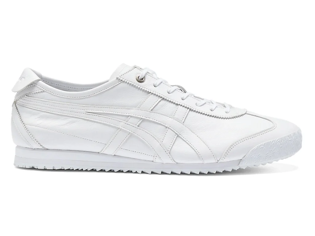 Introducing the MEXICO 66 SD, a model reinvented with elements inherited from our iconic MEXICO 66 shoe including the Onitsuka Tiger Stripes, a thin sole and the cross parts of the heel that represent Onitsuka Tiger and its rich history. The soft, elegant leather delivers a refined silhouette and further pursues comfort. The slim shoelaces and metal eyelets also create an elegant impression. -Leather upper -Metal eyelets -AMPLIFOAM material in heel wedge for superior cushioning -Original outsole compound for excellent grip -OrthoLite X-40 sockliner for springy feel and softer ground impact Country of Manufacture : Vietnam / Indonesia DETAIL INFORMATION - Brand: Onitsuka Tiger - Part No: 1183A872 - 1183A872.117 WHITE/WHITE - Upper material/surface: Leather - Outer Sole Material: Rubber