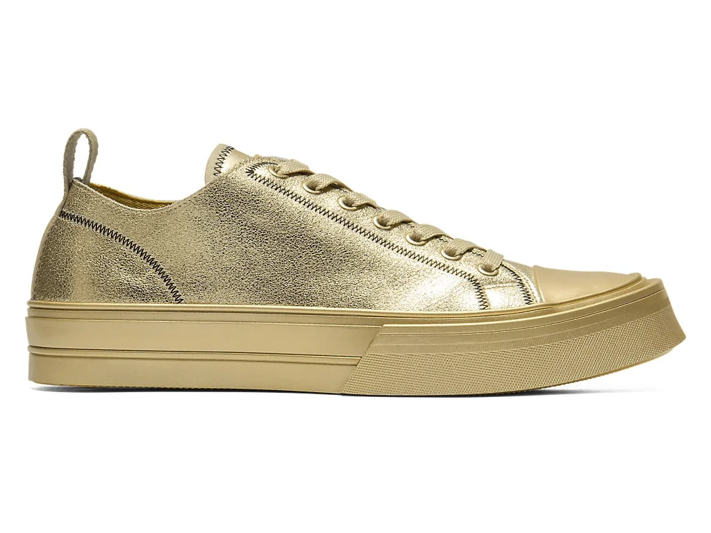 A modern update of Onitsuka's first shoe, the basketball shoe. ■A fusion of classic and modern This shoe is a modern update based on Onitsuka's first basketball shoe, released in 1950, while inheriting its design DNA. The upper is made from gold-colored leather, adding depth and a sense of luxury to casual outfits. The zigzag stitching provides a stylish accent to the simple design. ■Unique textured gold-colored leather The upper is made from foil-pressed leather with a crinkled surface, creating a rich luster. The sole is finished in gold color with a spray to match the upper, adding a sense of unity and glamour to the design. ■Sole Design Inspired by Onitsuka's First Shoe The voluminous sole adds a modern and sophisticated touch to the overall look of the shoes. It retains the unique outer sole shape inspired by Onitsuka's first shoe, incorporating a new design that enhances grip. ・Original sockliner offers superior cushioning DETAIL INFORMATION - Brand: ONITSUKA TIGER - Country of Manufacture: Vietnam - Part No: 1183C547 - 1183C547.200 GOLD/GOLD - Upper material/surface: LEATHER・RUBBER・SYNTHETIC FIBER - Outer Sole Material: RUBBER